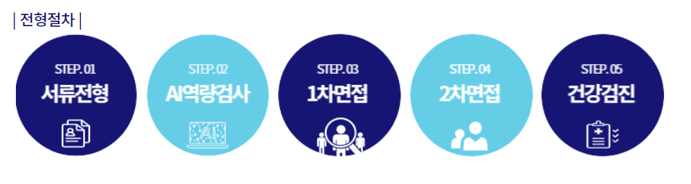 | 전형절차 | 1) 서류전형 2) AI역량검사 3) 1차면접 4) 2차면접 5) 건강검진 |